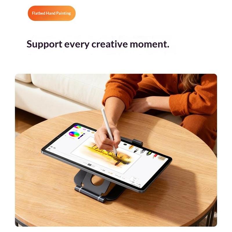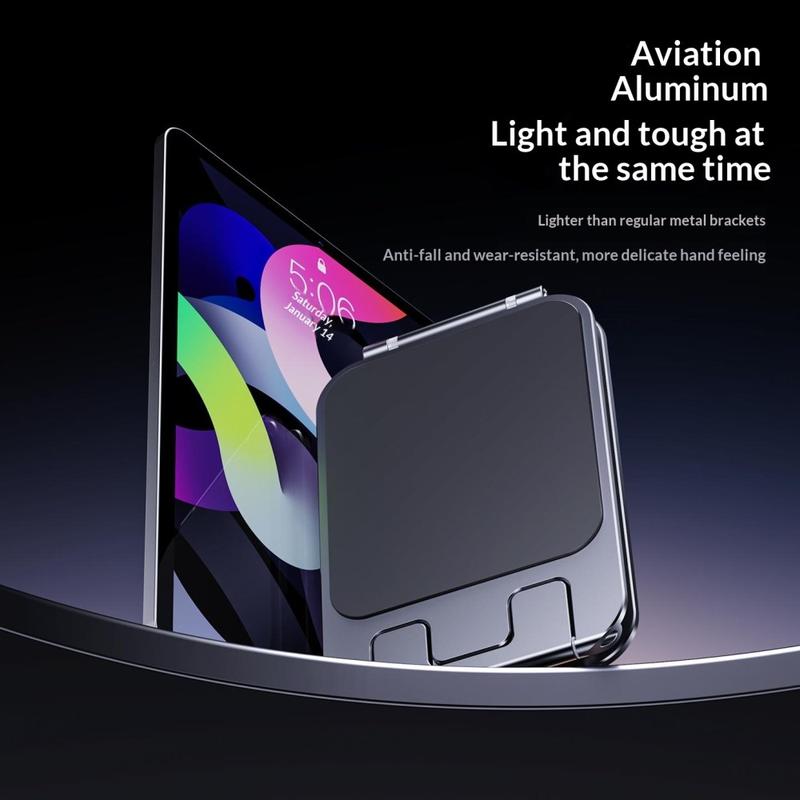 Laadukkaasta alumiiniseoksesta valmistettu teline yhdistää kestävyyden ja siistin, modernin ulkonäön. Tukeva rakenne tarjoaa laitteellesi vakaata tukea, kun taas liukumattomat silikonityynyt suojaavat sitä naarmuilta ja vähentävät ei-toivottua liikkumista käytön aikana. Tämä tekee siitä erityisen hyödyllisen työpöydillä, pöydillä ja muilla tasaisilla pinnoilla, joilla vakaa asento on tärkeää.