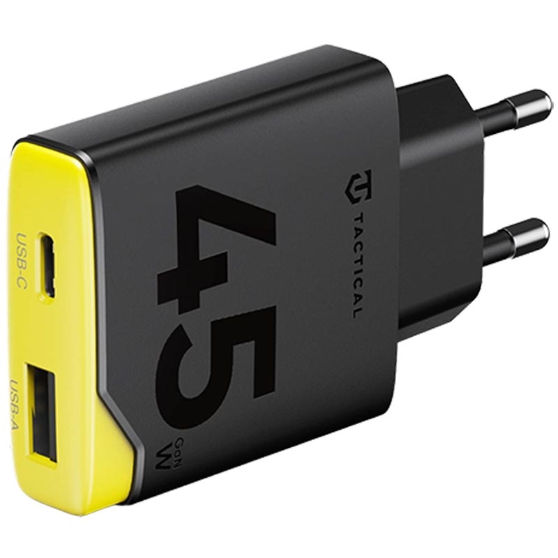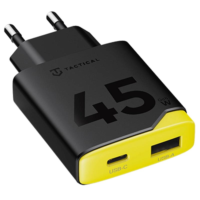 Tactical Minimi 45W AC GaN -pikalaturi - kaksiporttinen USB-C- ja USB-A-seinälaturi, jossa on 4-kerroksinen suojaus