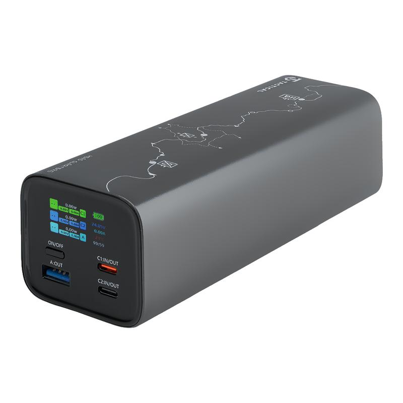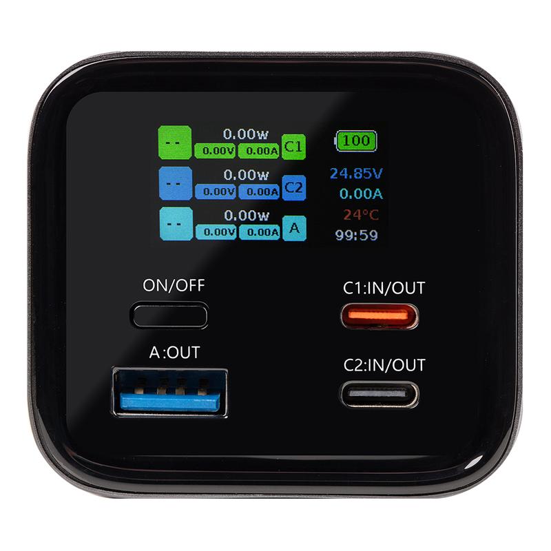 Kaksi USB-C-porttia ja yksi USB-A-portti mahdollistavat joustavan usean laitteen lataamisen kestävässä alumiiniseosrungossa. Integroitu TFT-näyttö näyttää akun varaustason, lataustilan sekä nykyisen tulo- tai lähtötehon, joten tilanne on aina selvästi nähtävissä. Kestävä, taktisesta muotoilusta inspiraationsa saanut rakenne ja suuri varavirtamäärä tekevät siitä käytännöllisen valinnan käyttäjille, jotka tarvitsevat luotettavaa latausta pistorasian ulottumattomissa.
