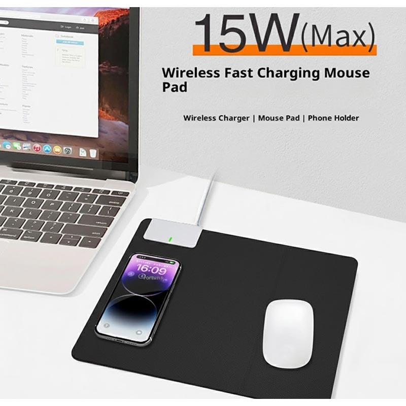 Tämä hiirimatto tarjoaa mukavuutta, tehokkuutta ja älykästä toiminnallisuutta yhdessä tyylikkäässä lisävarusteessa. Se poistaa erillisten latureiden ja jalustojen tarpeen, mikä auttaa pitämään työtilasi siistinä ja varmistaa samalla, että puhelimesi pysyy virralla ja näkyvillä koko päivän.