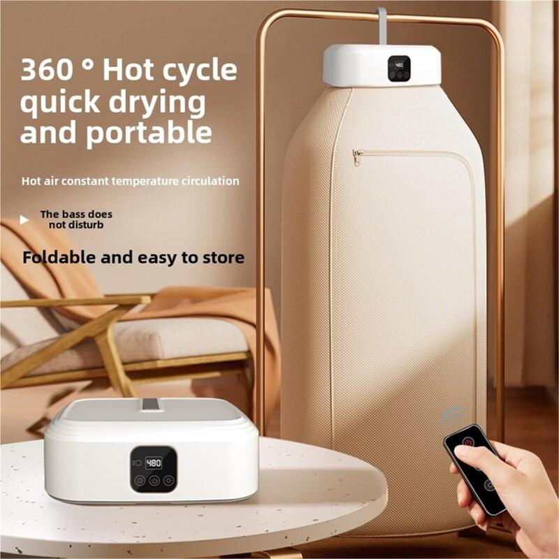 Taitettava vaatteiden kuivausrumpu 360° kuumalla ilmankierrolla - 60°C kuivaus + UV sininen valo sterilointi, PTC keraaminen lämmitys, 10 kg:n kuormitus, ajastin 1-8 h, kaukosäätö