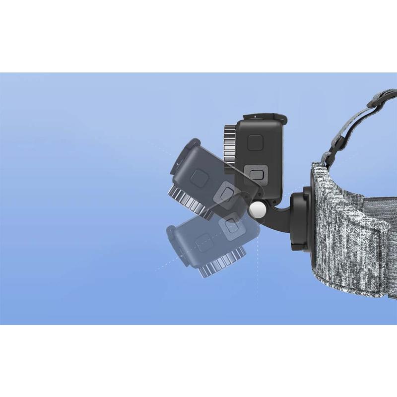 Mukavuutta ja joustavuutta silmällä pitäen suunniteltu pääpanta on säädettävissä, jotta se istuu paremmin, ja sen avulla voit kallistaa kameraa jopa 180 astetta saadaksesi juuri oikean kuvakulman. Voit myös irrottaa kiinnikkeen ja kiinnittää sen lippalakkiin vaihtoehtoista kuvausasentoa varten. Laaja yhteensopivuus mahdollistaa käytön monien action-kameroiden kanssa, ja se tukee suosittuja malleja, kuten GoPro ja Osmo Action (joillekin kameroille saatetaan tarvita kotelo).