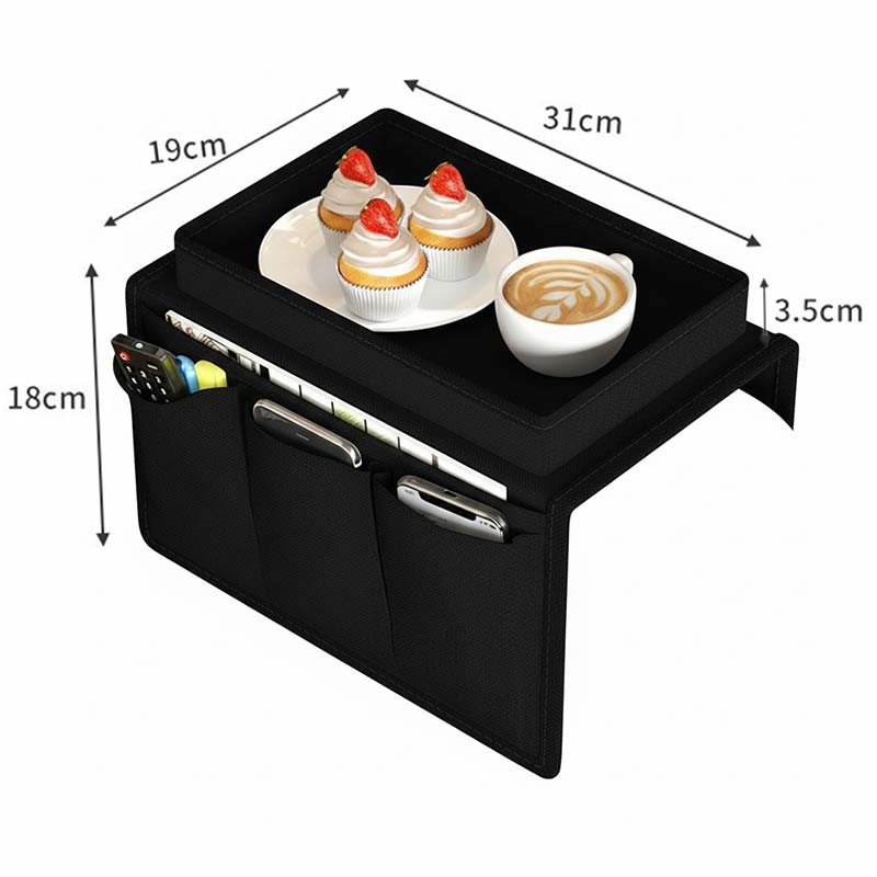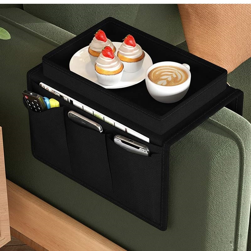 Tilaa säästävä sohvan käsinojan järjestäjä tarjoaa älykkään ja kätevän tavan pitää asuintilasi siistinä säilyttämällä päivittäiset tarvikkeesi aivan vieressäsi. Kestävästä oxford-kankaasta valmistettu, pölyä ja kulutusta kestävä, takaa pitkäaikaisen käytön menettämättä muotoaan. Oxford-kankaasta ja pahvista valmistettu vahvistettu keskuslokero lisää vakautta ja pitää tavarat siististi järjestyksessä.