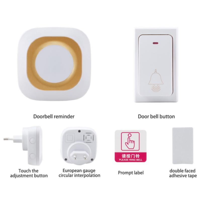 Tämä malli sisältää myös langattoman ovikellomuistutusjärjestelmän. Kun joku painaa ovikellon painiketta, kello voi ilmoittaa siitä vilkkuvalla valolla, äänellä ja värinällä, mikä tekee siitä erityisen hyödyllisen ihmisille, jotka eivät ehkä kuule tavallista ovikelloa selvästi. Kaksi virtalähdevaihtoehtoa lisäävät luotettavuutta: tasavirta päivittäiseen käyttöön ja 3 AAA-paristoa varavirtalähteeksi sähkökatkojen varalta.