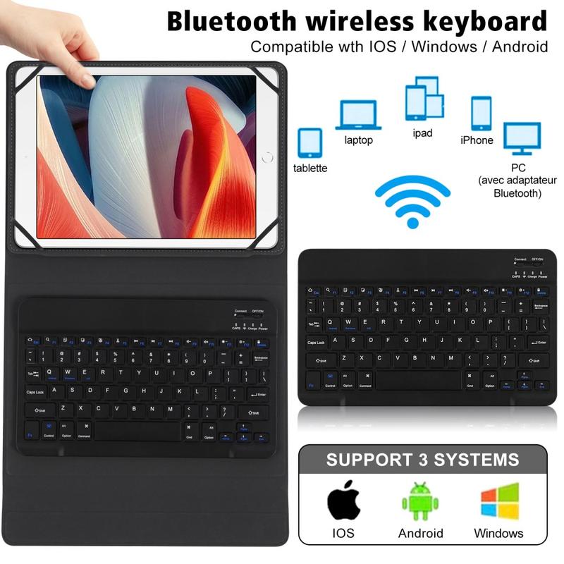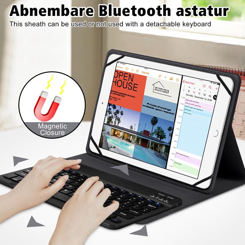 TY3316 Yleiskäyttöinen tablettikotelo Bluetooth-näppäimistöllä - 9-11", polyuretaani jalustakotelo säädettävällä katselukulmalla, joustavat hihnat, US-asettelu