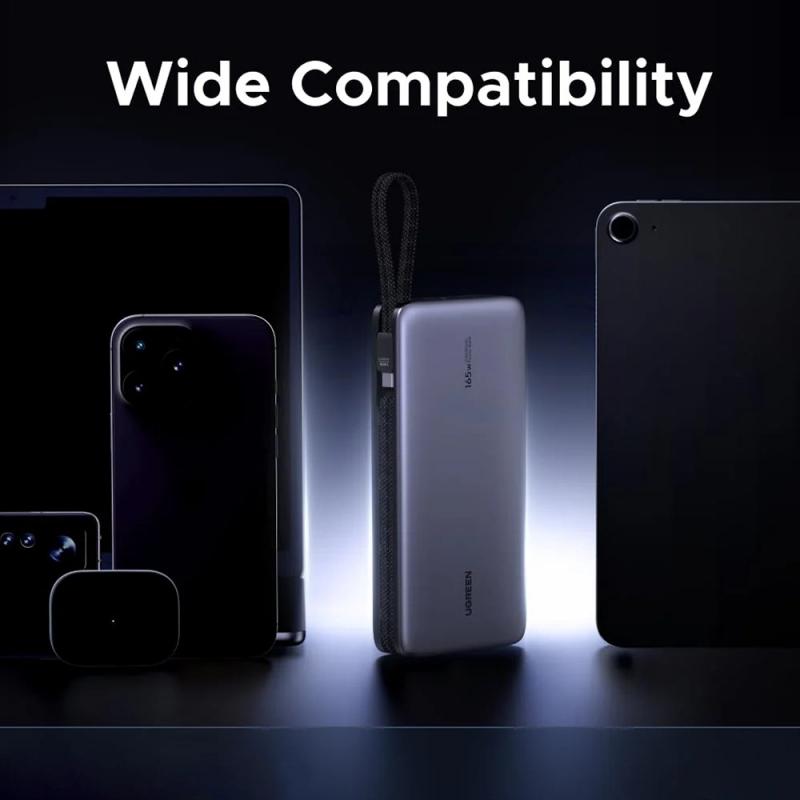 Ugreen PB552 on korkean suorituskyvyn virtapankki, joka on suunniteltu paljon laitteita käyttäville käyttäjille, jotka tarvitsevat paljon virtaa pistorasian ulkopuolella. Sen kapasiteetti on 25 000 mAh ja kokonaisteho jopa 165W, joten se voi ladata kannettavia tietokoneita, tabletteja, älypuhelimia ja lisälaitteita tehokkaasti matkoilla, etätyössä, kokouksissa ja pitkillä työpäivillä. Kaksi sisäänrakennettua USB-C-kaapelia pitävät laitteistosi siistinä ja käyttövalmiina, ja mahdollisuus ladata jopa neljä laitetta kerralla tekee siitä luotettavan, mukana kuljetettavan all-in-one-latauskeskuksen.