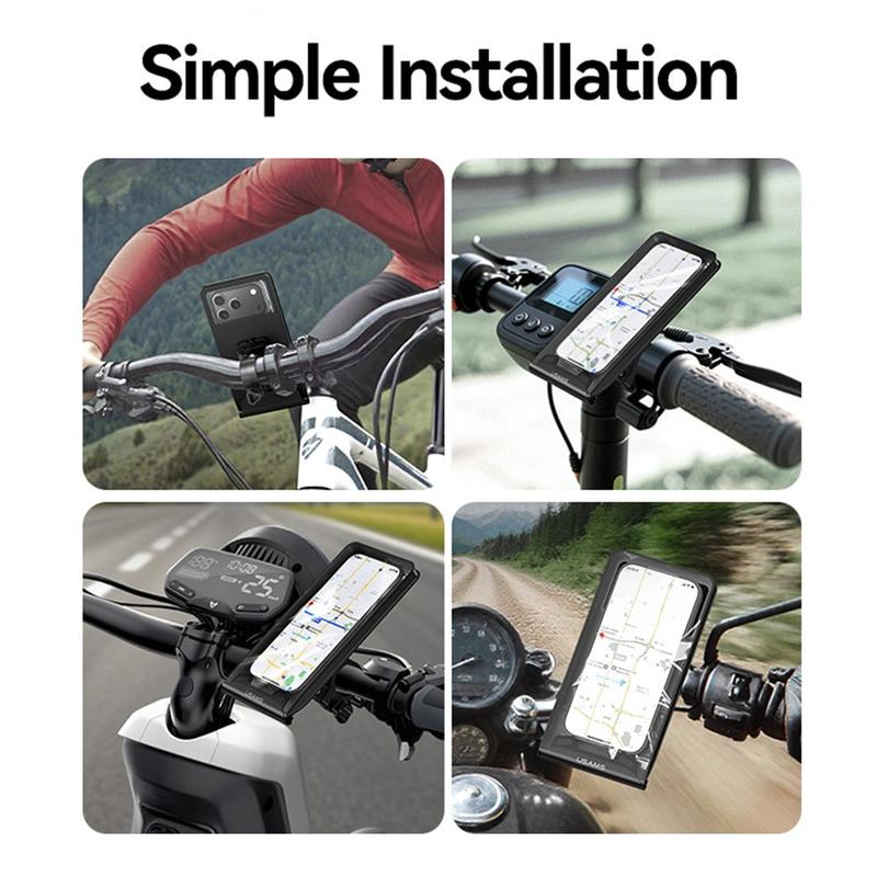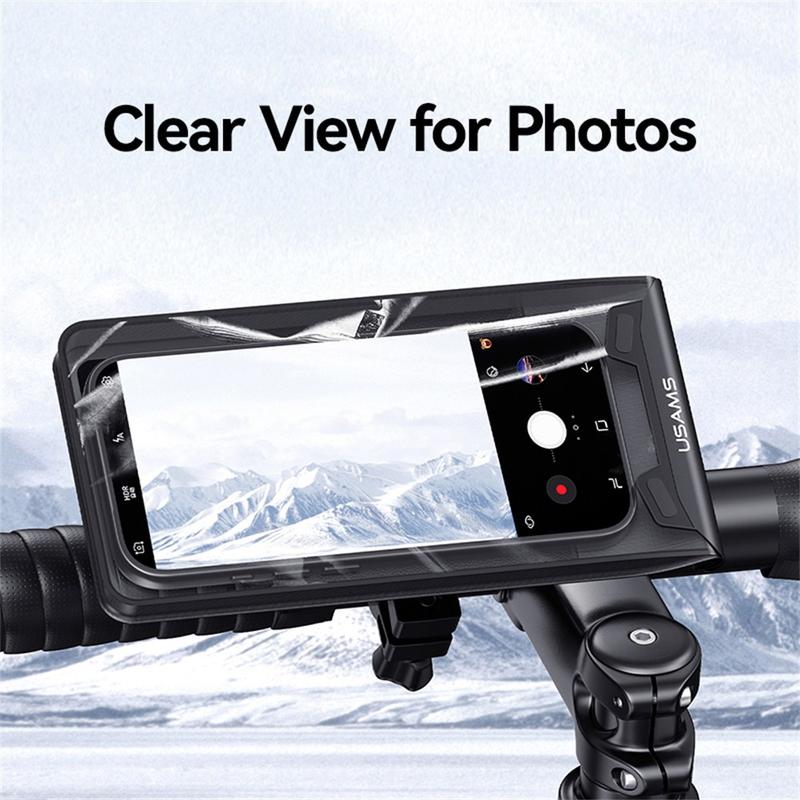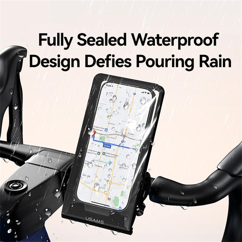 Usams ZJ083 vedenpitävä pyörän puhelinteline läpinäkyvällä ikkunalla - 360 astetta kääntyvä ohjaustangon kiinnike (4,7-7,2 tuumaa)