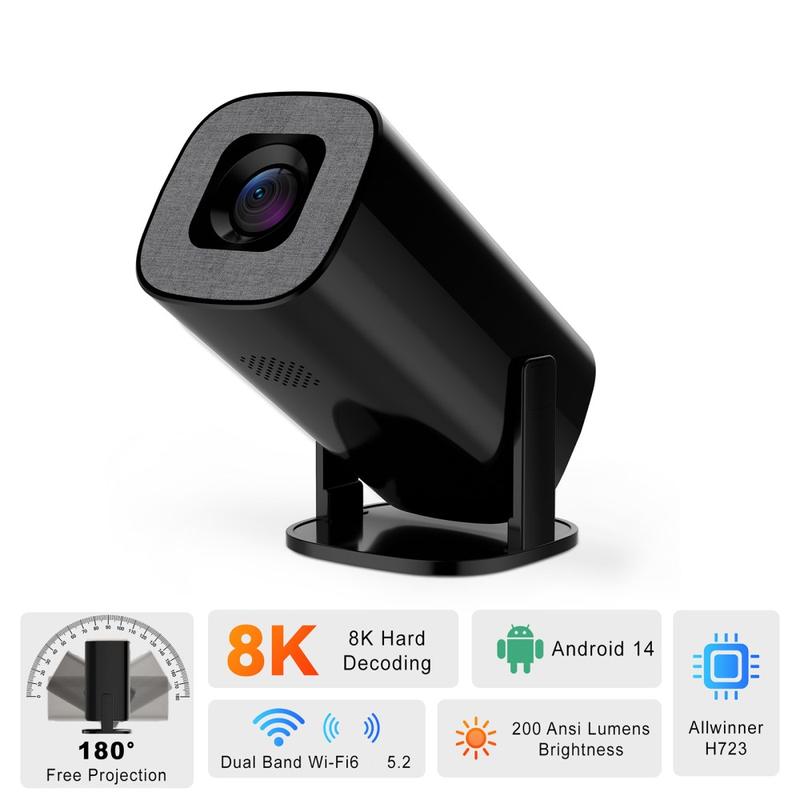 V1 kannettava Android 14 -projektori (200 ANSI) - 720p natiivi, automaattinen keystone, 180° kallistus, WiFi 6 dual-band ja Bluetooth 5.2, 1 Gt/8 Gt