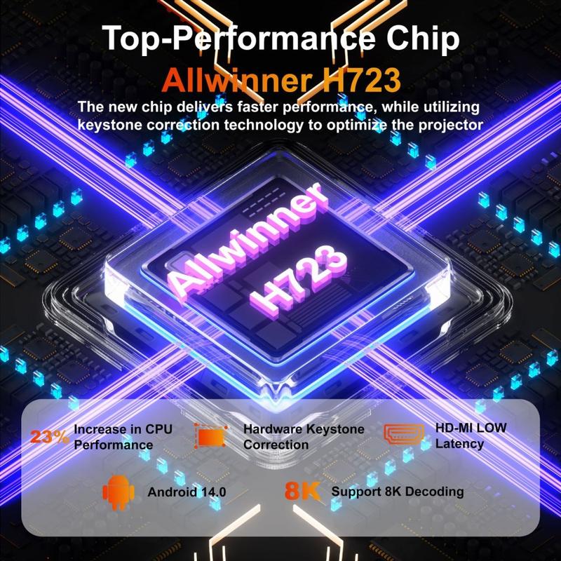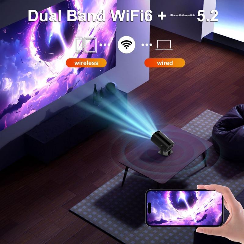 Asennus on nopeaa ja vaivatonta automaattisen keystone-korjauksen (30 %) ja nelipisteisen säädön ansiosta, jotka auttavat sinua suoristamaan kuvan, vaikka projektori ei olisikaan täysin keskitetty. Kaksikaistainen WiFi 6 ja Bluetooth-yhteensopiva 5.2 tukevat sujuvaa langatonta yhteyttä näytön heijastamiseen, kaiuttimiin ja kuulokkeisiin, ja hiljainen rakenne (<25 dB 1 metrin etäisyydellä) pitää huomion katsomassasi sisällössä.