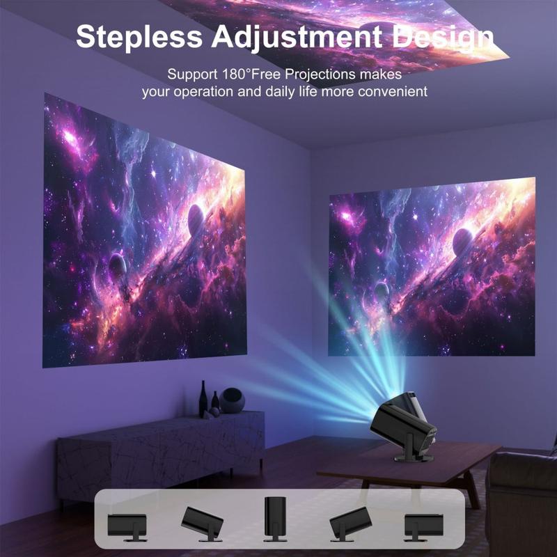 V1-älyvideoprojektori tuo suurikokoisen viihteen mihin tahansa. Se on erittäin kompakti kotiteatteriprojektori, joka toimii Android 14 -käyttöjärjestelmällä. Voit suoratoistaa sovelluksia suoraan projektorille, peilata puhelimesi langattomasti tai liittää konsolin HD-tuloon elokuvailtoja, rentoa pelaamista ja esityksiä varten. 200 ANSI-kirkkaus on ihanteellinen hämärissä huoneissa ja iltana katseluun, kun taas 180 asteen säädettävä projisointikulma helpottaa projisointia seinälle tai jopa kattoon yöpöydältä.