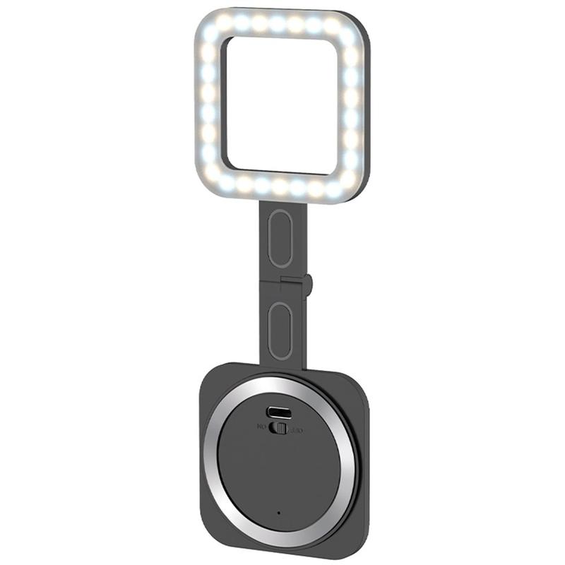 V18 magneettinen selfie-täytevalo - kannettava LED-videovalo puhelintelineellä, 3 W, 2500 K-9000 K, USB-C-ladattava