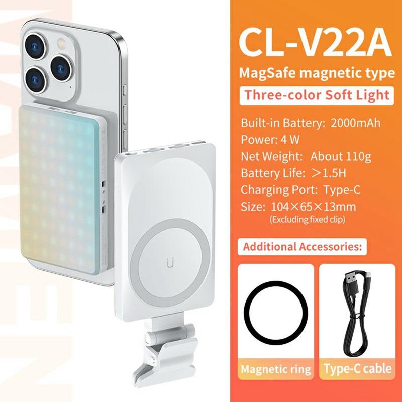 V22A Portable Magnetic LED Fill Light tarjoaa tehokkaan ja tarkan valaistuksen kompaktissa rakenteessa, joka on ihanteellinen älypuhelimiin, kameroihin ja suoratoistoasetelmiin. Type-C-latauksen, säädettävän kirkkauden ja laajan värilämpötila-alueen ansiosta se takaa erinomaiset tulokset riippumatta siitä, kuvaatko sisällä, ulkona tai liikkeellä.