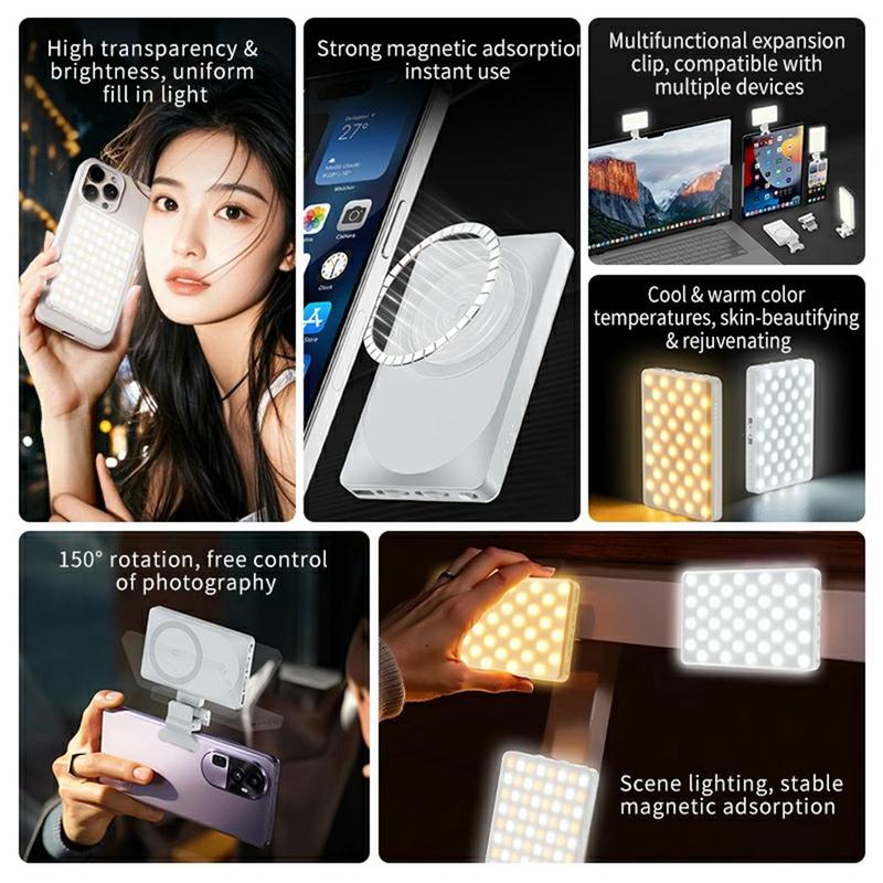 V22A 4W Kannettava magneettinen magneettinen LED-täyttövalo - taskukokoinen C-tyypin ladattava kameravalo puhelimelle ja suoratoistolle