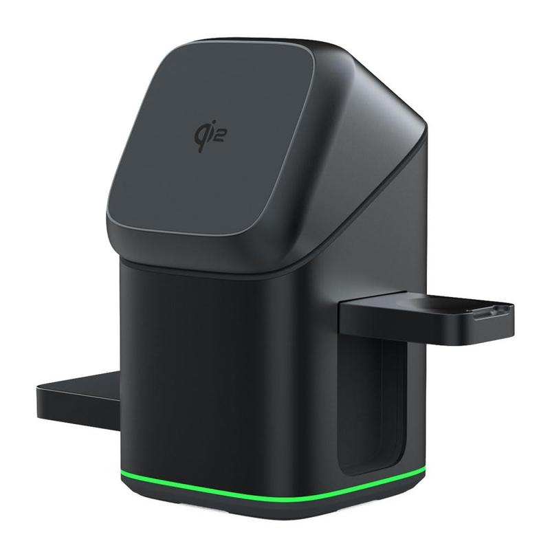 - 3-in-1 langaton lataustelakka puhelimelle, kellolle ja kuulokkeille
