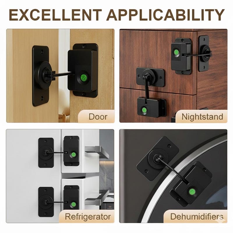 V86-sormenjälkiturvalukko on suunniteltu monipuoliseen suojaukseen kodin pinnoilla, kuten jääkaapeissa, laatikoissa, yöpöydissä, kaapeissa, ikkunoissa, pesukoneissa ja arkistokaapeissa. Saatavilla on sekä liima-asennus- (ei porausta) että ruuvikiinnitysvaihtoehtoja, joten se mukautuu helposti erilaisiin kokoonpanoihin.