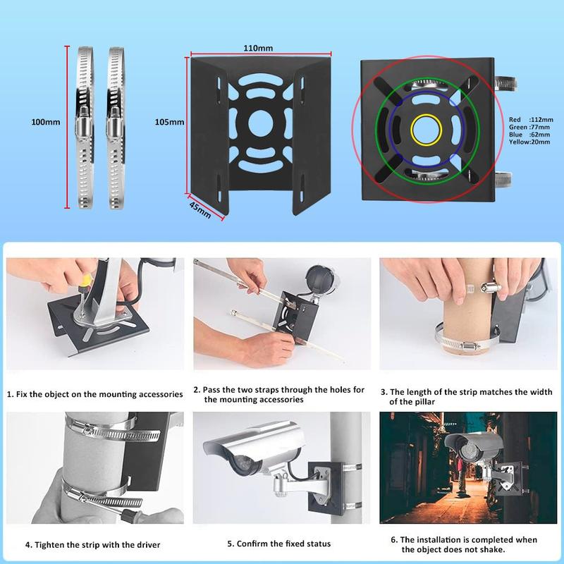 Tämä kiinnike tarjoaa lujuutta, joustavuutta ja helpon asennuksen yhdessä ratkaisussa. Sen säädettävä muotoilu, laaja yhteensopivuus ja kestävä teräsrakenne tekevät siitä ihanteellisen kaikille, jotka tarvitsevat luotettavan tavan sijoittaa valvontakameroita ilman pysyviä rakenteellisia muutoksia.