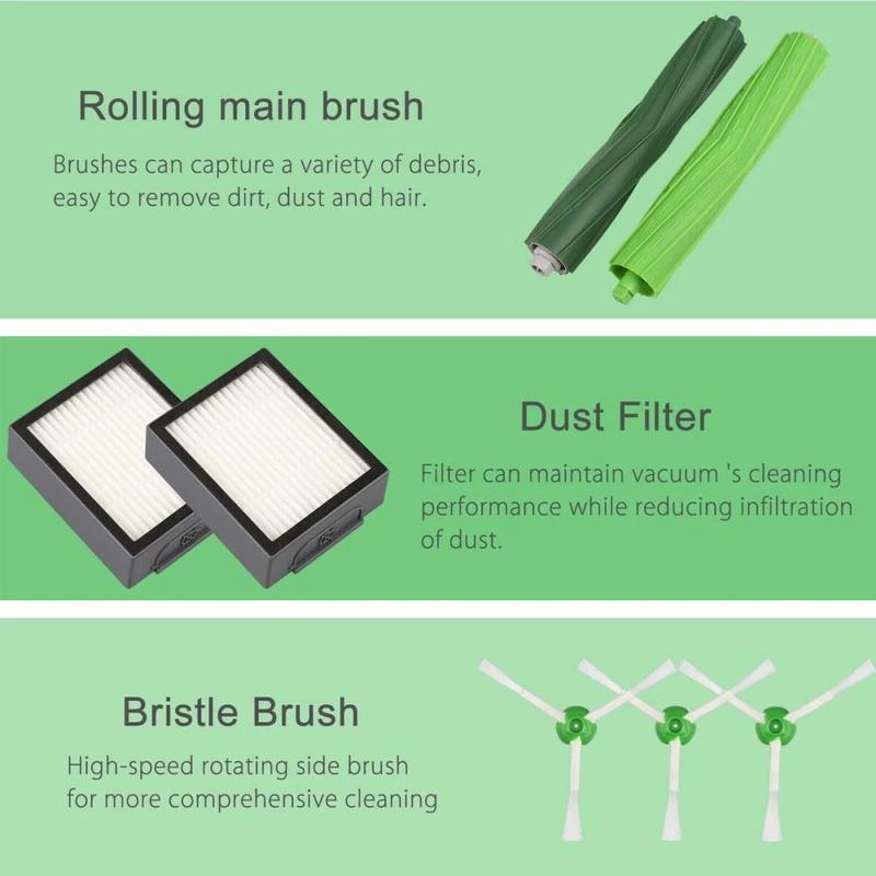 Tämä all-in-one-pakkaus on olennainen päivitys Roomban omistajille, ja siinä yhdistyvät laadukkaat materiaalit ja tarkka muotoilu maksimaalisen puhdistustehon saavuttamiseksi. Se on kustannustehokas tapa pitää pölynimurisi moitteettomana ja ylläpitää pölyämätön ympäristö.