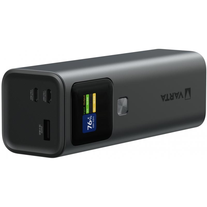 Varta High-Speed Powerbank 27000mAh on suorituskykyinen kannettava virtalähde, joka on suunniteltu käyttäjille, jotka tarvitsevat suurta latauskapasiteettia liikkeellä ollessaan. Jopa 140W:n teholla se voi ladata älypuhelimia, tabletteja ja jopa vaativia kannettavia tietokoneita täysillä nopeuksilla. Suuren kapasiteetin, nopean lataamisen ja älykkään LCD-näytön ansiosta se on ihanteellinen matkalle, töihin ja pitkäaikaiseen käyttöön ilman pistorasiaa.