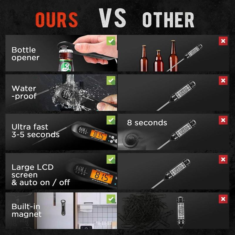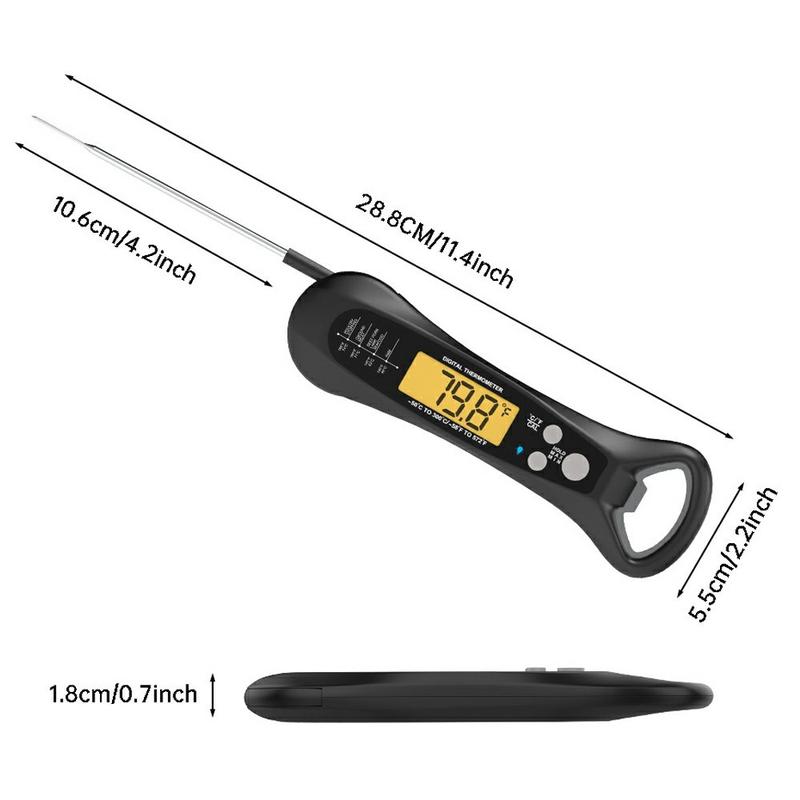 Vedenpitävä taitettava digitaalinen ruoan lämpömittari grillaukseen ja ruoanlaittoon - 2-3 sekunnin pikamittaus, -50 °C - 300 °C, taustavalaistu LCD-näyttö, magneetti ja pullonavaaja, IP67