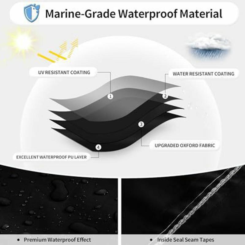 Jos haluat yksinkertaisen ja tehokkaan tavan pidentää veneesi siistiä ulkonäköä ja vähentää huoltoa, tämä kansi on fiksu investointi. PU-pinnoitettu 210D-kangas, turvalliset hihnat ja joustava joustava helma tekevät siitä ihanteellisen omistajille, jotka tarvitsevat luotettavan suojan säilytystä ja kuljetusta varten - ilman monimutkaista sovitusta tai tilaa vieviä materiaaleja.