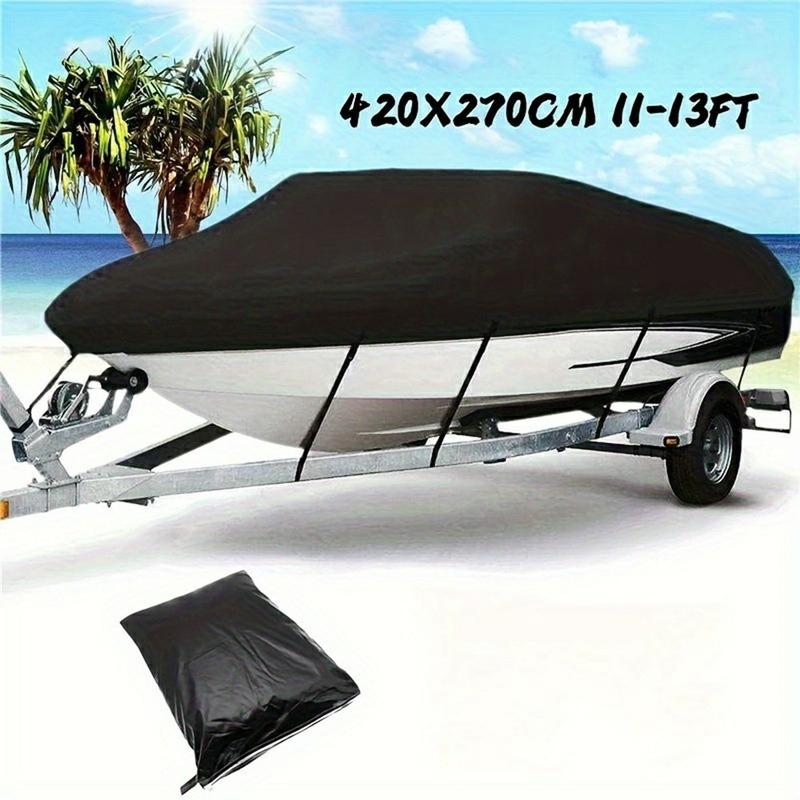 Vedenpitävä 210D suojus 11-13 jalkaisille veneille (420 x 270cm) - PU-pinnoitettu aurinko- ja sääsuojapeite säädettävillä hihnoilla, soljilla ja säilytyslaukulla.