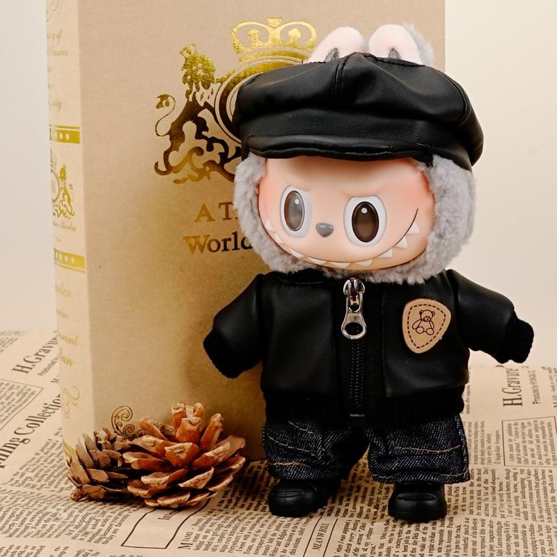 Vintage Aviator Style Outfit Set for Labubu Doll 17cm - 5Pcs vaihdettava puku, jossa on t-paita, takki, farkut, hattu ja kengät Gen 1 / 2 / 3 figuureille.