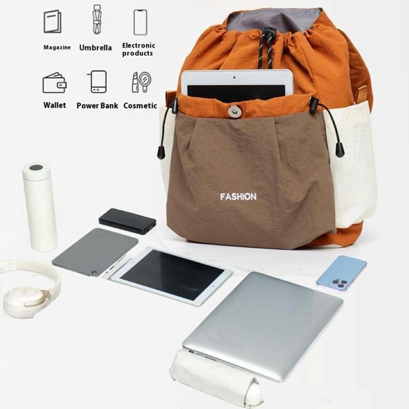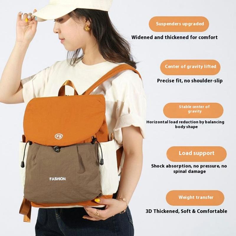Lisää ripauksen vintage-viehätystä jokapäiväiseen tyyliisi tällä Color Block Canvas -repussa. Tässä kevyessä laukussa, jossa on maanläheisiä kontrastisävyjä ja klassinen läppämalli, yhdistyvät muoti ja käytännöllisyys. Se painaa vain 0,26 kg ja tarjoaa suuren kapasiteetin ilman tilaa, joten se sopii erinomaisesti kouluun, töihin, lyhyille matkoille tai jopa tyylikkääksi vaippalaukuksi. Kestävä kankainen ulkopinta ja polyesterivuori takaavat pitkäikäisen käytön, ja nuorekas "FASHION"-kirjain tuo vintage-henkiseen ulkoasuun trendikkään lisän.