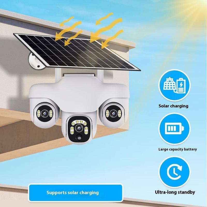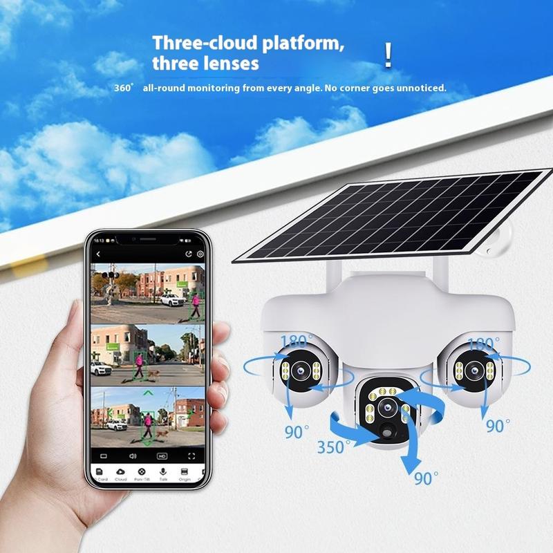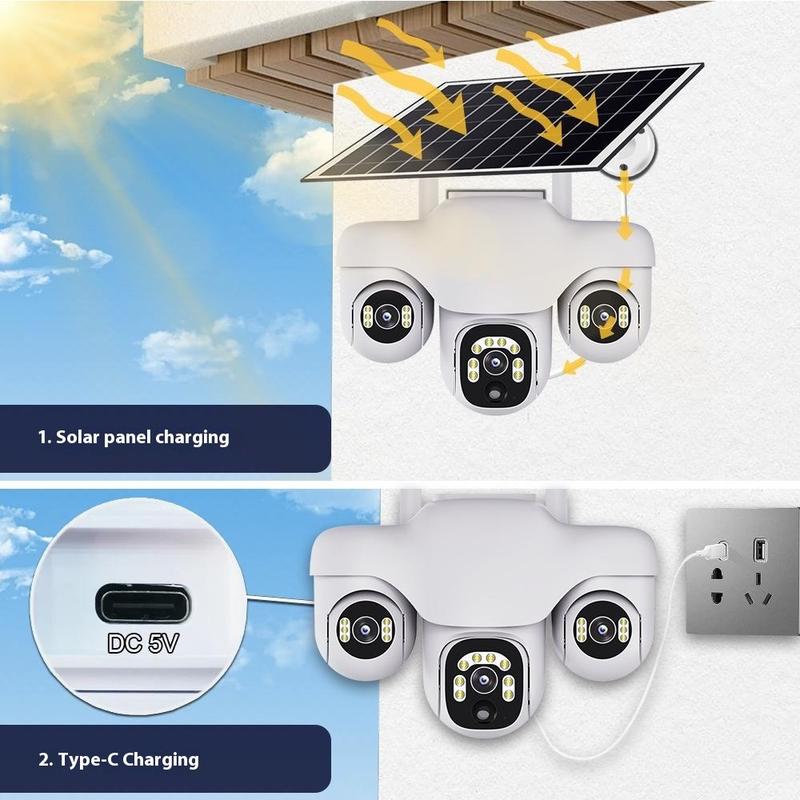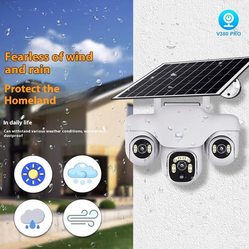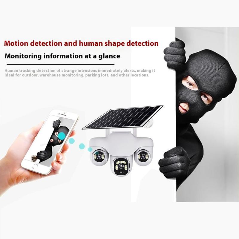 VTS31 V380 Aurinkokäyttöinen PTZ-turvakamera kolminkertaisella objektiivilla - Ulkokäyttöön tarkoitettu WiFi-valvontakamera liiketunnistuksella