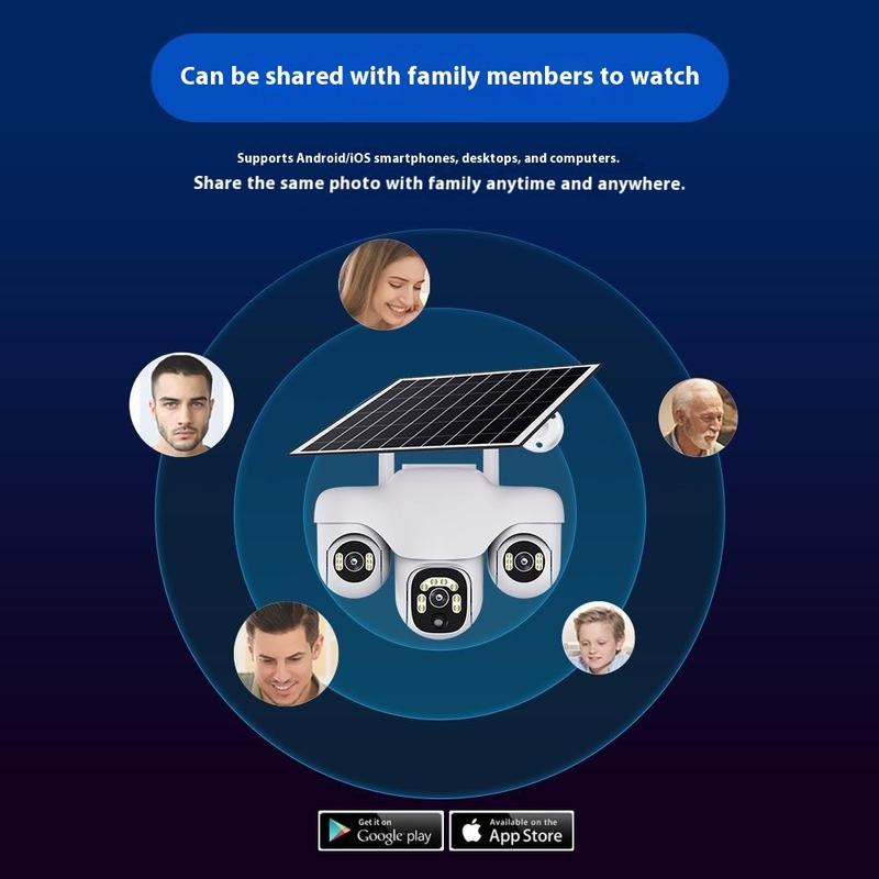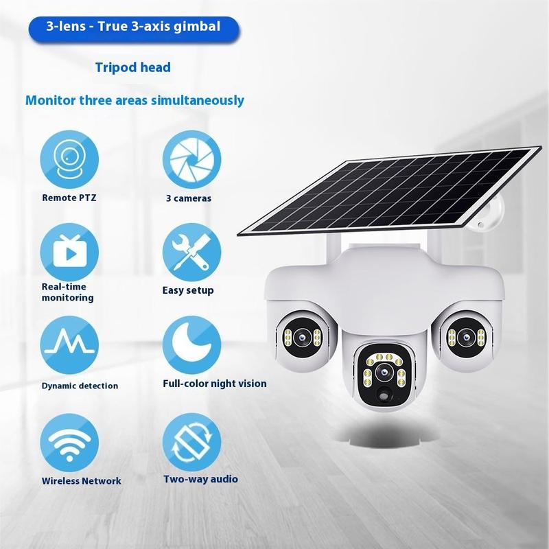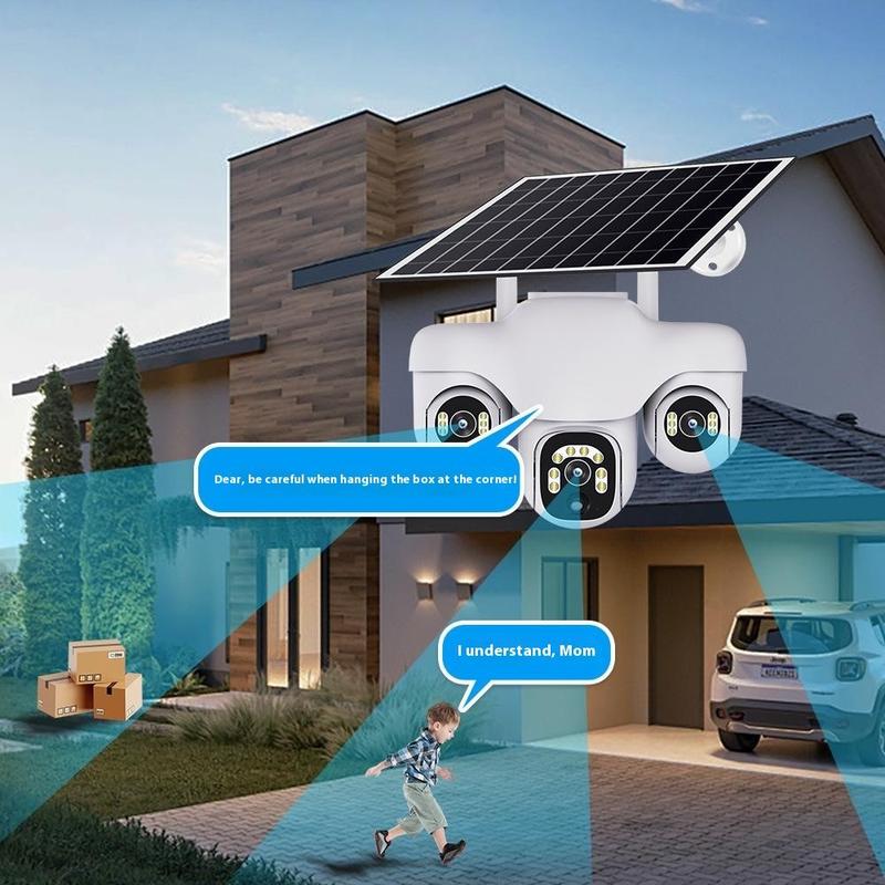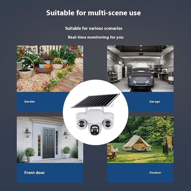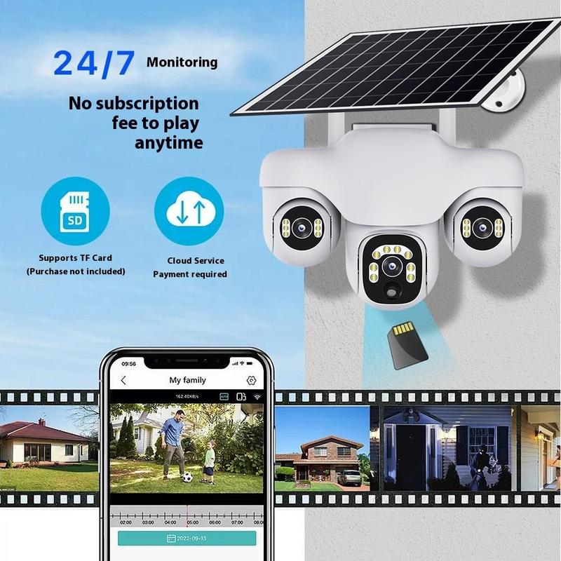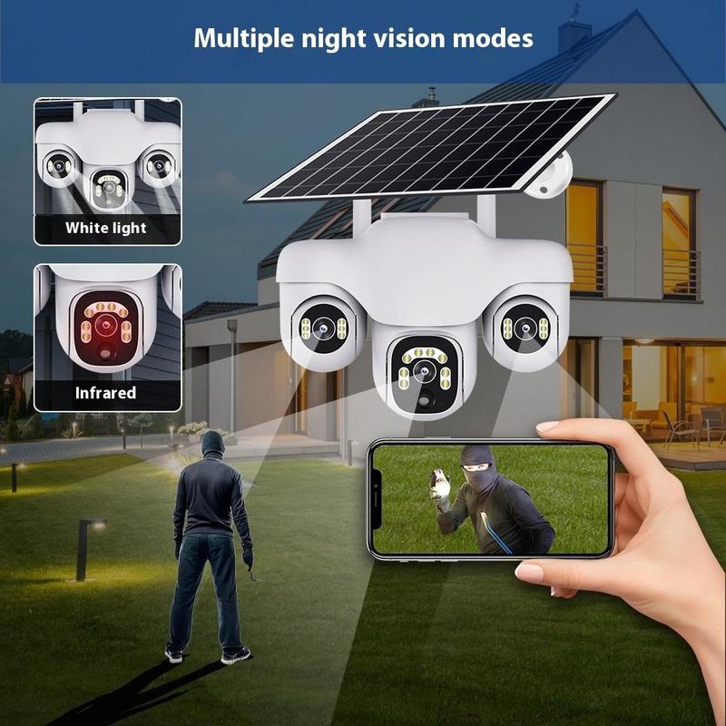 VTS31 V380 Aurinkokäyttöinen PTZ-turvakamera kolminkertaisella objektiivilla - Ulkokäyttöön tarkoitettu WiFi-valvontakamera liiketunnistuksella