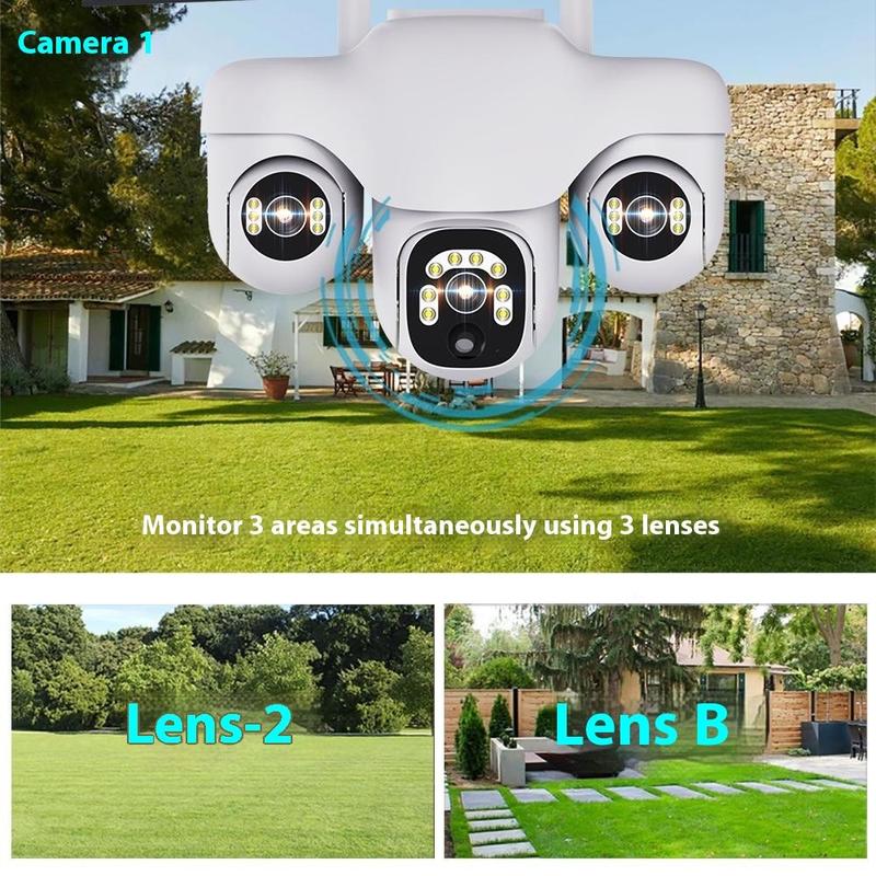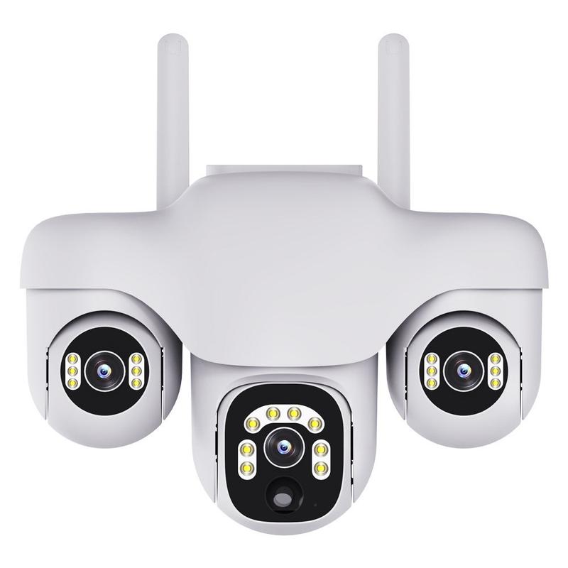 Tämä malli yhdistää panoraamakattavuuden, älykkäät tunnistustoiminnot ja yötarkkailun yhteen ulkokäyttöön sopivaan malliin. Kolmoisobjektiivijärjestelmän ja kääntyvän PTZ-rakenteen ansiosta se pystyy valvomaan paljon laajempaa aluetta kuin monet tavalliset yksiobjektiiviset kamerat, mikä auttaa vähentämään kiinteistön ympärillä olevia sokeita pisteitä.