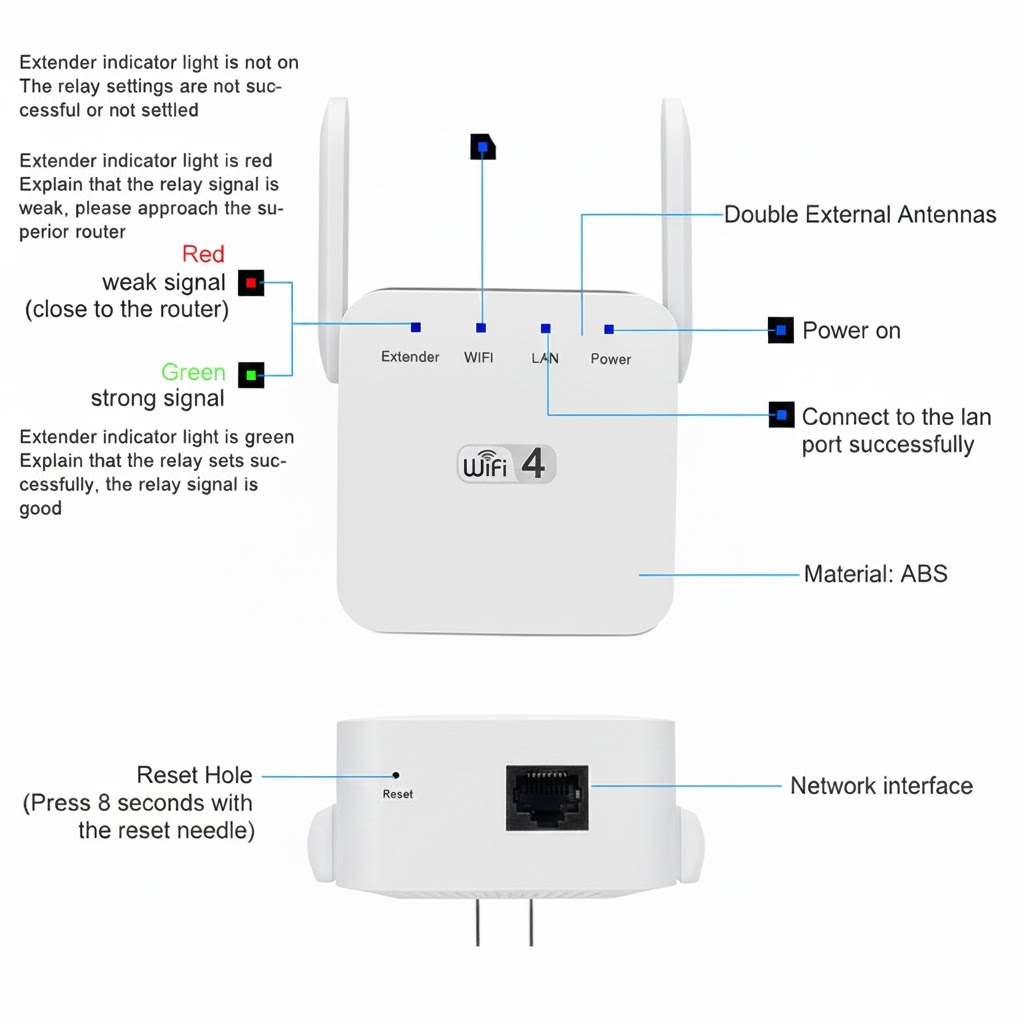 Laajennuslaite on helppo ottaa käyttöön englannin- ja kiinankielisen opastetun näyttövalikon avulla. Se on yhteensopiva useimpien reitittimien kanssa ja tukee yhteyksiä 30 tai useammalle laitteelle, mukaan lukien tietokoneet, älypuhelimet, tabletit, multimediasoittimet ja älykodin laitteet.