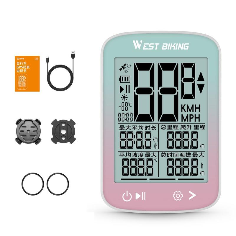 West Biking YP0702112 GPS-pyörätietokone - 2,4 tuuman FSTN LCD-näyttö, 5-järjestelmäinen GPS, IPX7-vesitiivis, USB-C, 800 mAh, yli 20 tuntia
