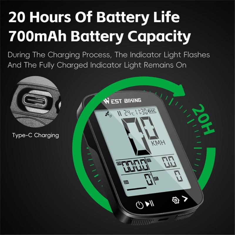 West Biking YP0702113 GPS-pyörätietokone - 2,4 tuuman heijastamaton näyttö, 5-järjestelmäinen paikannus, IPX7-vesitiivis, 20 tunnin akku, CE-sertifioitu
