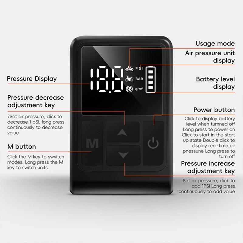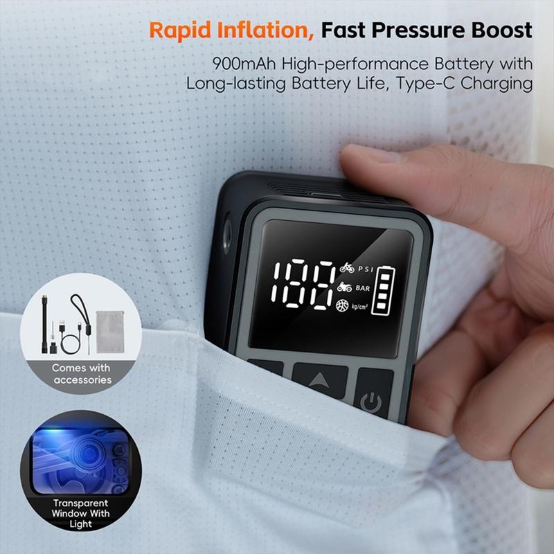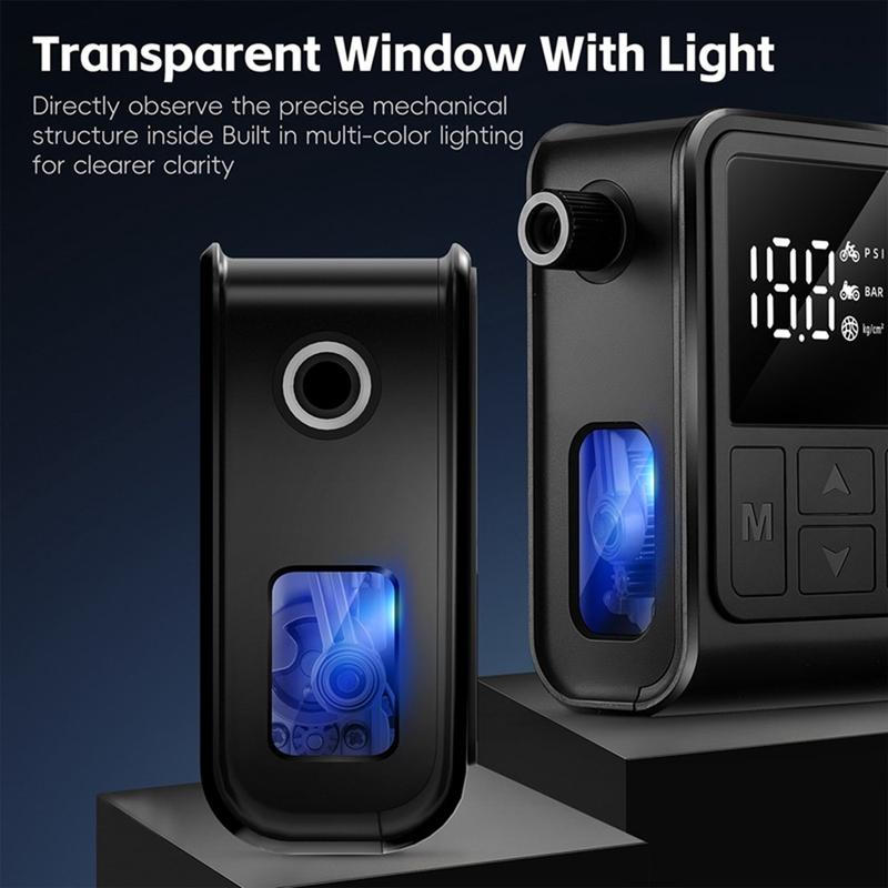 Tämän kaltaiset kannettavat sähköpumput käyttävät kompaktia moottoroitua mäntäjärjestelmää korkean ilmanpaineen tuottamiseksi pienessä muodossa. Digitaalinen näyttö ja automaattiset sammutusominaisuudet ovat saaneet inspiraationsa ammattimaisten autotallien kompressoreista, ja ne tarjoavat edistyksellisiä toimintoja matkaystävällisessä muotoilussa.