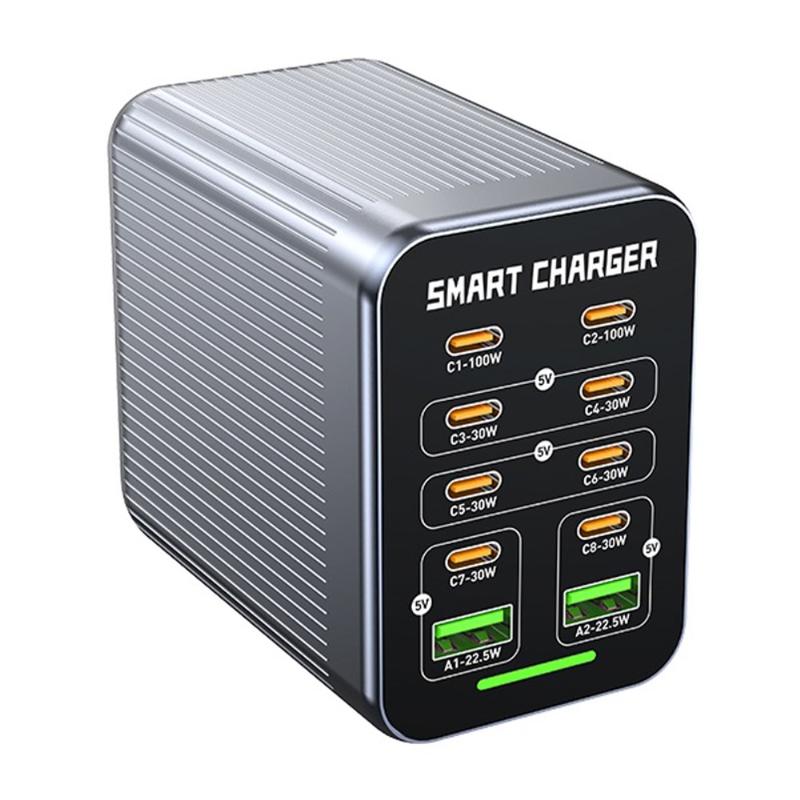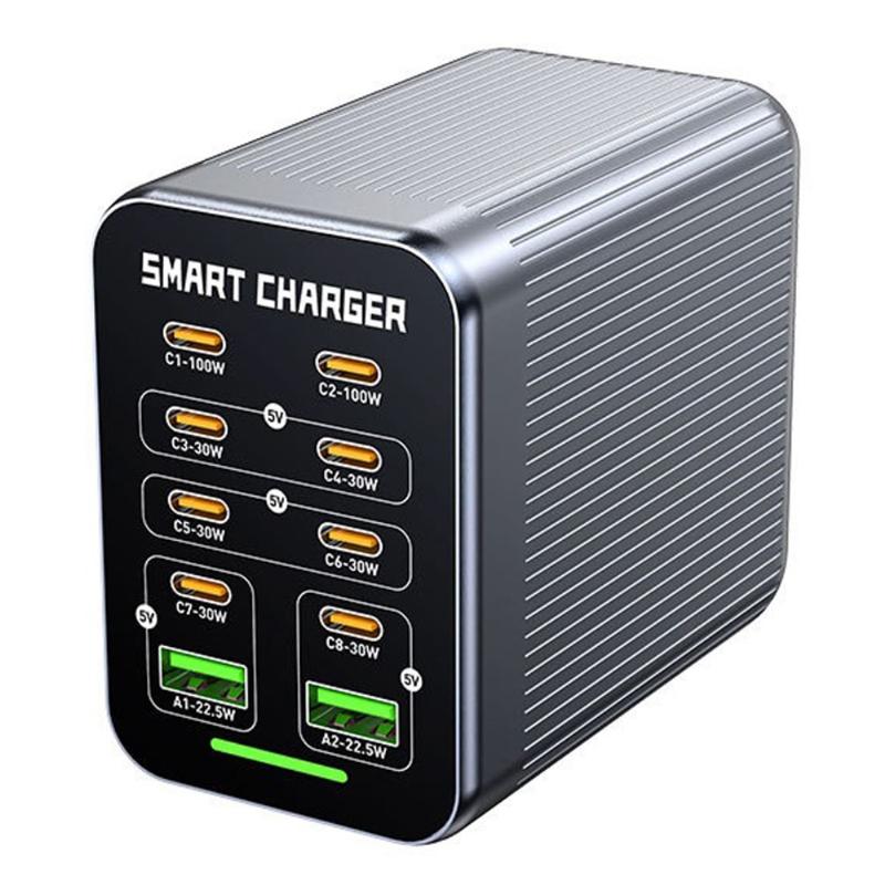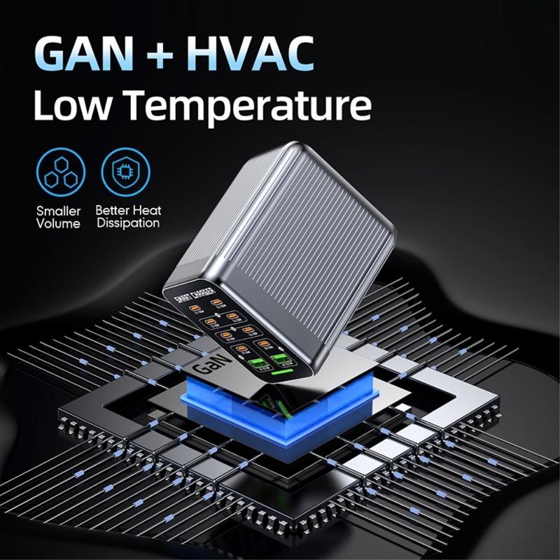 WLX-G1 425W GaN-pöytälatausasema, 10 porttia - monilaitteinen pikalaturi PD/QC/PPS-tuella, älykäs tuuletinjäähdytys, 100-240 V