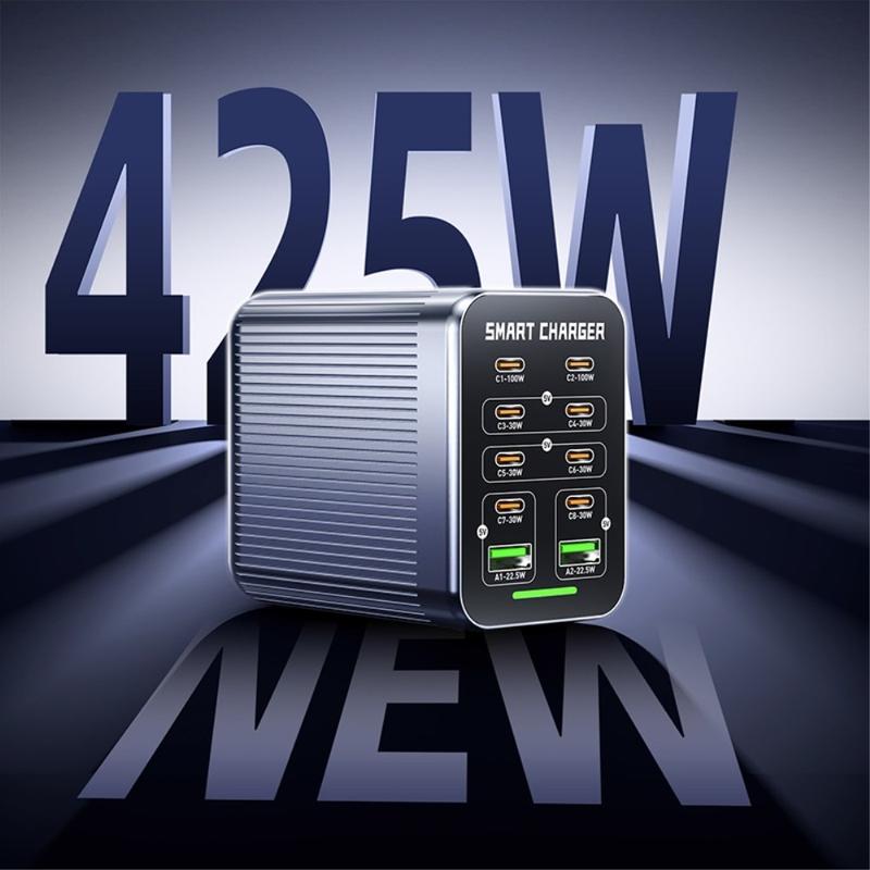 - Suuri kokonaisteho: jopa 425W useiden laitteiden lataamiseen samanaikaisesti