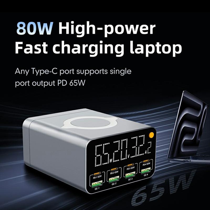 WLX-M3 80W 9-in-1 GaN pöytälatausasema - moniporttinen USB-C/USB-pikalaturi langattomalla latauksella (EU-pistoke)