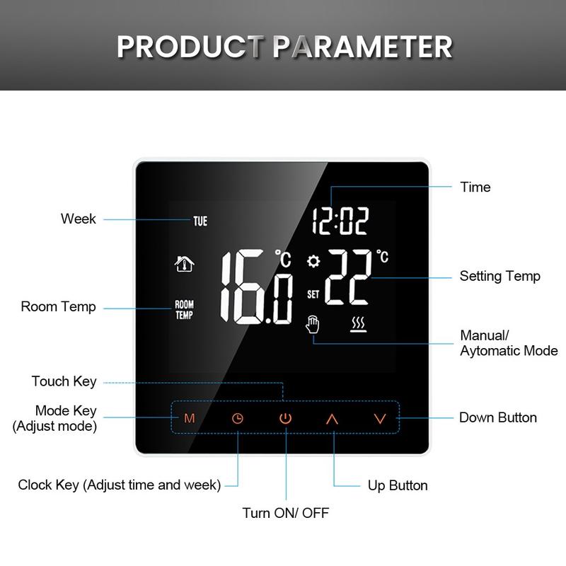 WT81-älytermostaatti on käytännöllinen ja moderni ratkaisu vesilattialämmityksen hallintaan entistä tarkemmin ja kätevämmin. Se on suunniteltu arjen mukavuutta silmällä pitäen ja auttaa pitämään sisälämpötilan vakaana samalla, kun se tarjoaa joustavan hallinnan kosketusnäytön tai mobiilisovelluksen kautta. Sen selkeä muotoilu, suuri LCD-näyttö ja älykotiyhteensopivuus tekevät siitä erinomaisen valinnan moderneihin asuintiloihin, toimistoihin, hotelleihin ja muihin sisätiloihin.