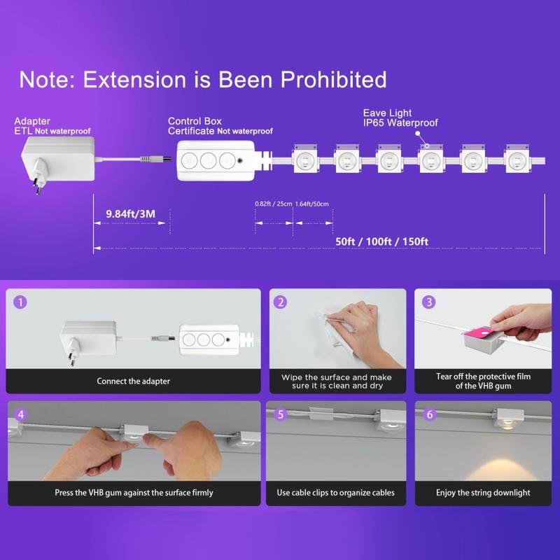 WY021 Vedenpitävä älykäs ulkokäyttöön tarkoitettu räystäsvalo / Ambience String Light, jossa on musiikin synkronointi App-ohjauksella, ääniohjaus