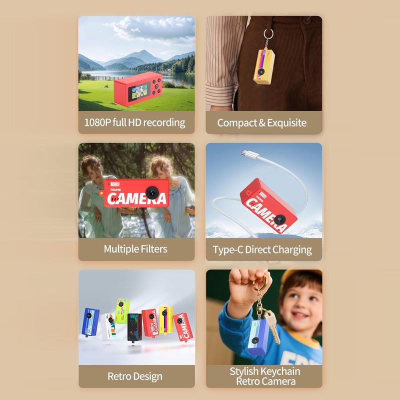 Ikuista hauskat hetket missä tahansa X7-retro-minikameralla. Tämä kevyt digitaalikamera on suunniteltu kompaktiksi ja taskukokoiseksi, ja se yhdistää nostalgisen tyylin moderniin 1080p Full HD -tallennukseen. Sisäänrakennetun 0,96 tuuman IPS-värinäytön ansiosta voit nopeasti esikatsella ja toistaa kuvia ja videoita, joten niiden tarkistaminen on helppoa.