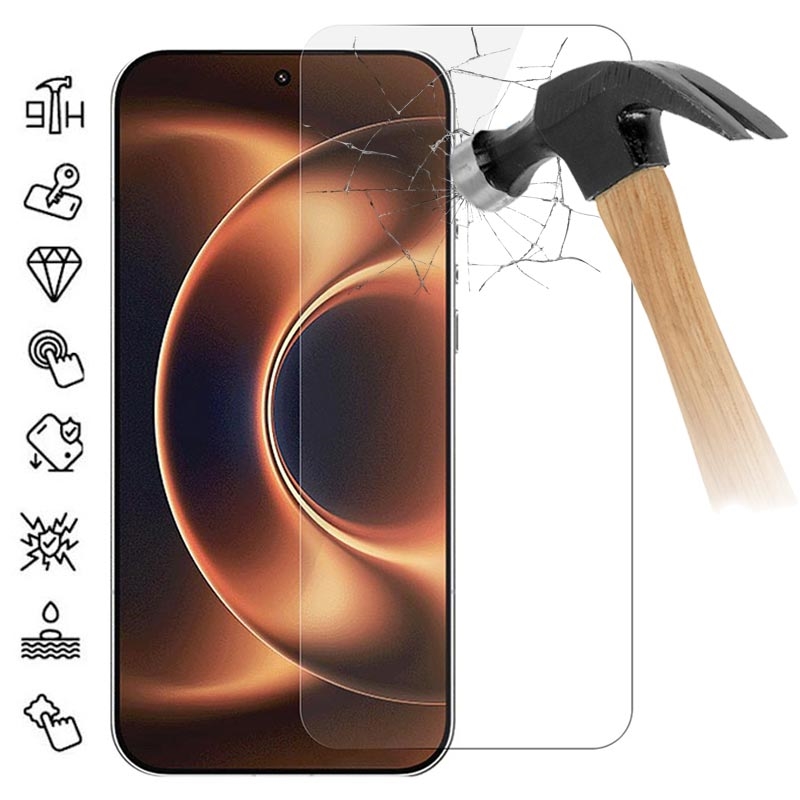 - Karkaistu lasi: Tarjoaa poikkeuksellisen iskunkestävyyden ja naarmuuntumissuojan, mikä pidentää laitteesi näytön käyttöikää.