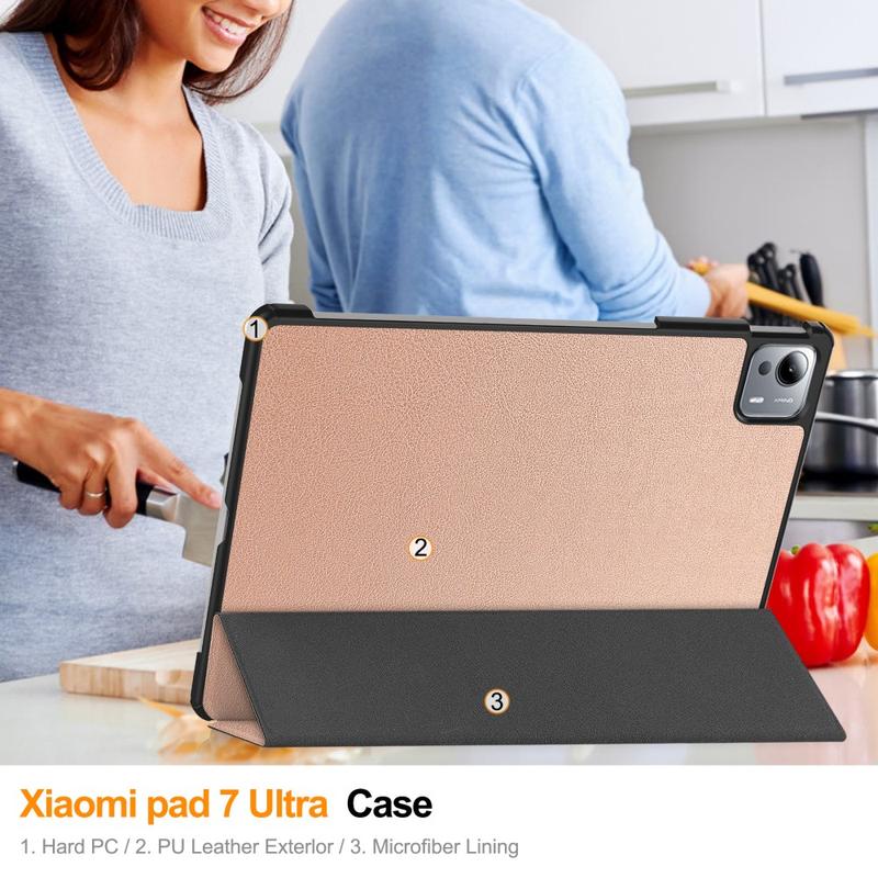 Tämä nahkainen jalustakotelo palvelee sekä tyyliä että sisältöä ja varmistaa, että Xiaomi Pad 7 Ultra pysyy turvallisena, toimivana ja muodikkaana. Iskuja vaimentavan suojan, integroidun kynäpaikan ja luotettavan jalustaominaisuuden ansiosta se on monipuolinen kumppani, jota tablettisi todella tarvitsee. Lisäksi laadukas rakenne on suunniteltu kestämään päivittäistä kulutusta, joten investointisi kannattaa pitkällä aikavälillä.