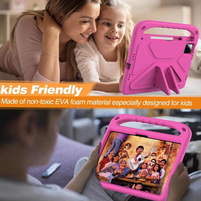 Suojaa Xiaomi Pad 7, Pad 7 Pro, Pad 8, Pad 8 Pro, Poco Pad X1 tällä jännittävällä lasten suojakotelolla. Iskunkestävä suojakotelo Xiaomi Pad 7, Pad 7 Pro, Pad 8, Pad 8 Pro, Poco Pad X1:lle on valmistettu ympäristöystävällisestä ja myrkyttömästä EVA-materiaalista, joten se on turvallista lapsille. Tämä suojakotelo suojaa taulutietokonetta riittävästi ja tarjoaa handsfree-katselunautinnon ja helpon pääsyn kaikkiin ominaisuuksiin.