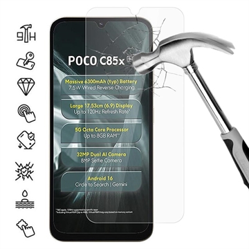 Tämä Xiaomi Poco C85x:n näytönsuoja on erinomainen sekä kestävyydessään että käyttökokemuksessaan. Se on valmistettu korkealaatuisesta karkaistusta lasista ja tarjoaa erinomaisen kirkkauden, luotettavan iskunkestävyyden ja vaivattoman asennusprosessin. Jos arvostat terävää näyttöä ja vankkaa suojaa, tämä suoja on välttämätön lisävaruste - se auttaa sinua säilyttämään laitteesi ulkonäön ja toiminnallisuuden pitkällä aikavälillä.