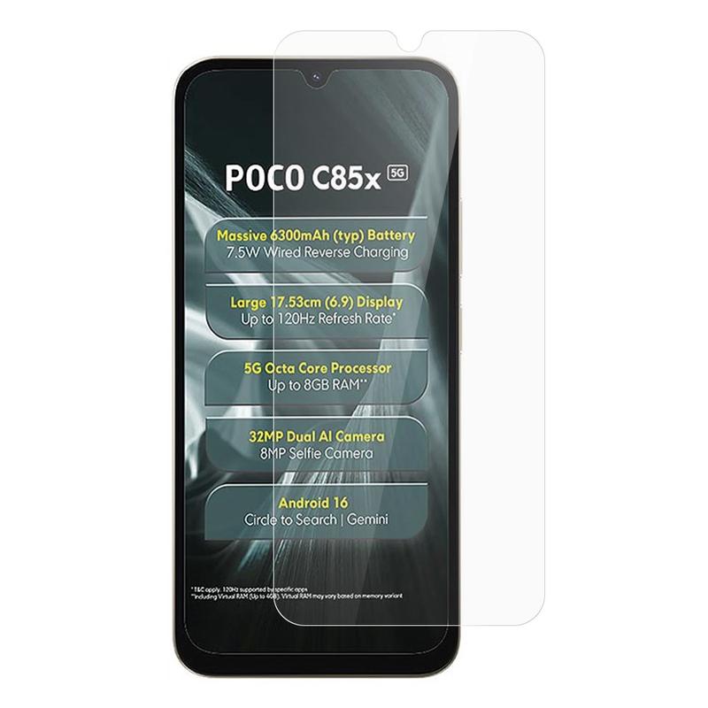 - 0,3mm:n kaareva reuna: Tarjoaa saumattoman tuntuman, joka sulautuu sulavasti Xiaomi Poco C85x:n ääriviivoihin ja estää reunojen lohkeilun.