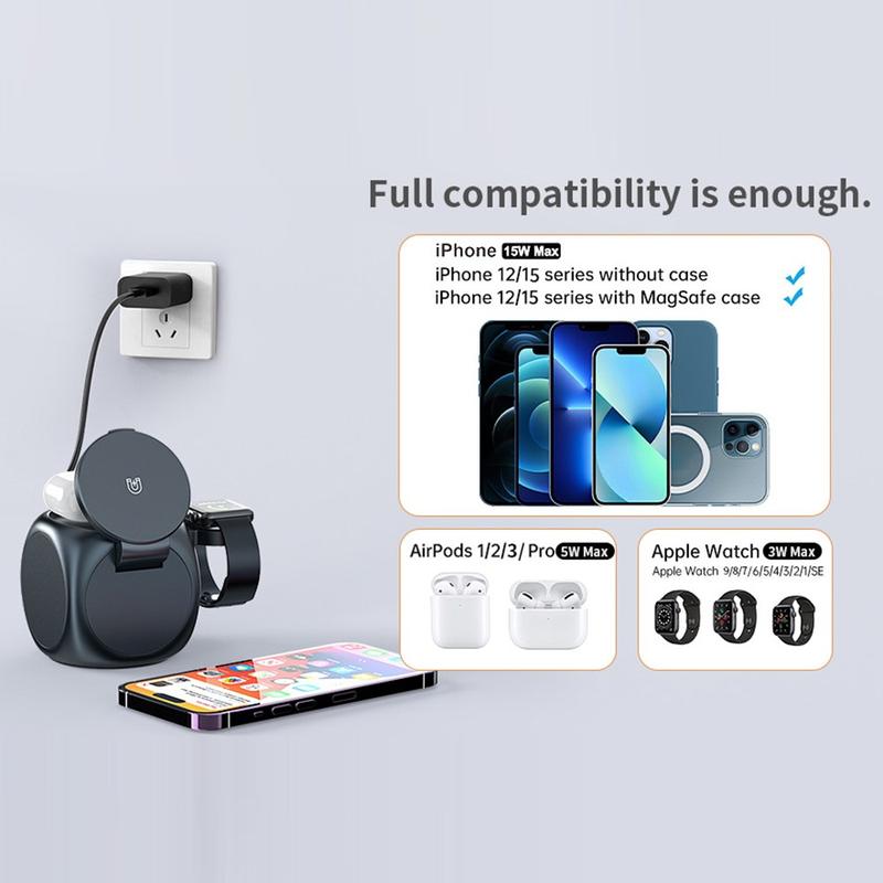 - 3-in-1 magneettilataus - Lataa iPhone, Apple Watch ja AirPodit kätevästi samanaikaisesti yhdellä kompaktilla ja tehokkaalla langattomalla asemalla.