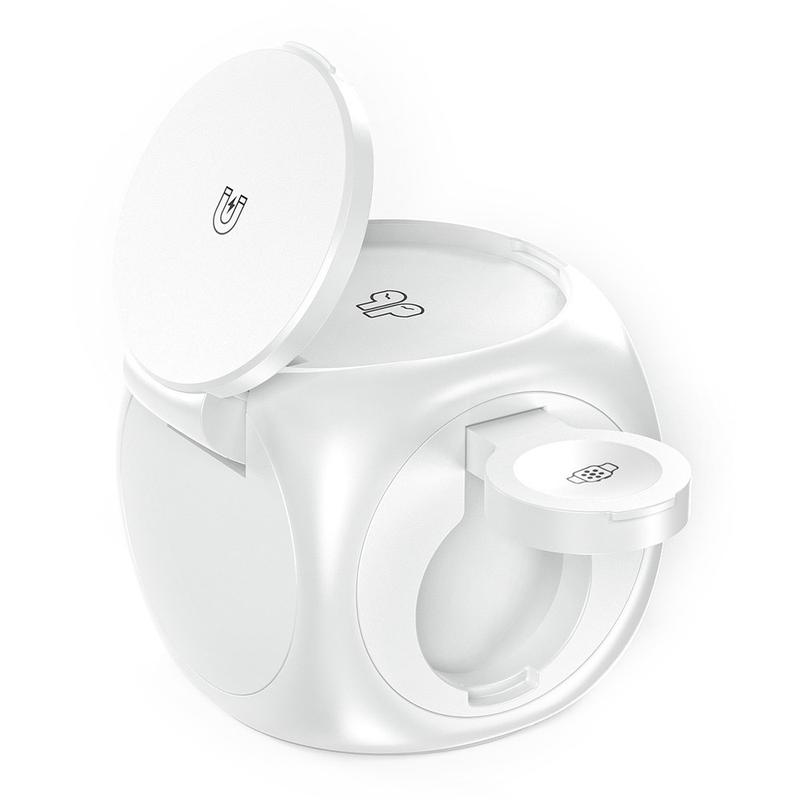 Yksinkertaista latausjärjestelyjäsi langattomalla Y22 3-in-1-latausasemalla, joka on tyylikäs kuution muotoinen magneettilaturi, joka on suunniteltu syöttämään virtaa iPhoneen, Apple Watchiin ja AirPodseihin samanaikaisesti. Nopean lataustehon, vahvan magneettisen kohdistuksen ja kompaktin muodon ansiosta se on täydellinen latausratkaisu työpöydälle tai sängyn viereen.