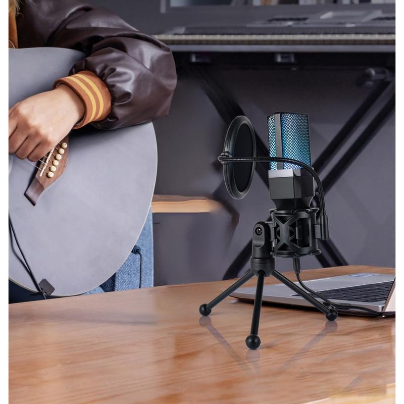 Yanmai X1R RGB USB-kondensaattorimikrofoni - langallinen pöytämikrofoni, jossa on pop-suodatin ja melunvaimennus pelaamiseen ja äänittämiseen