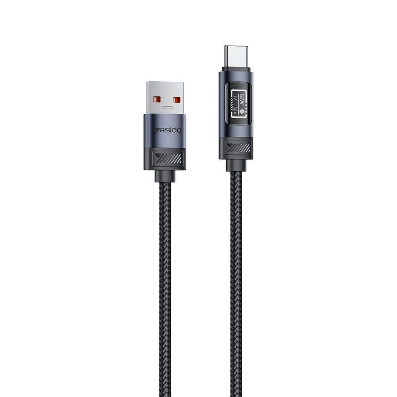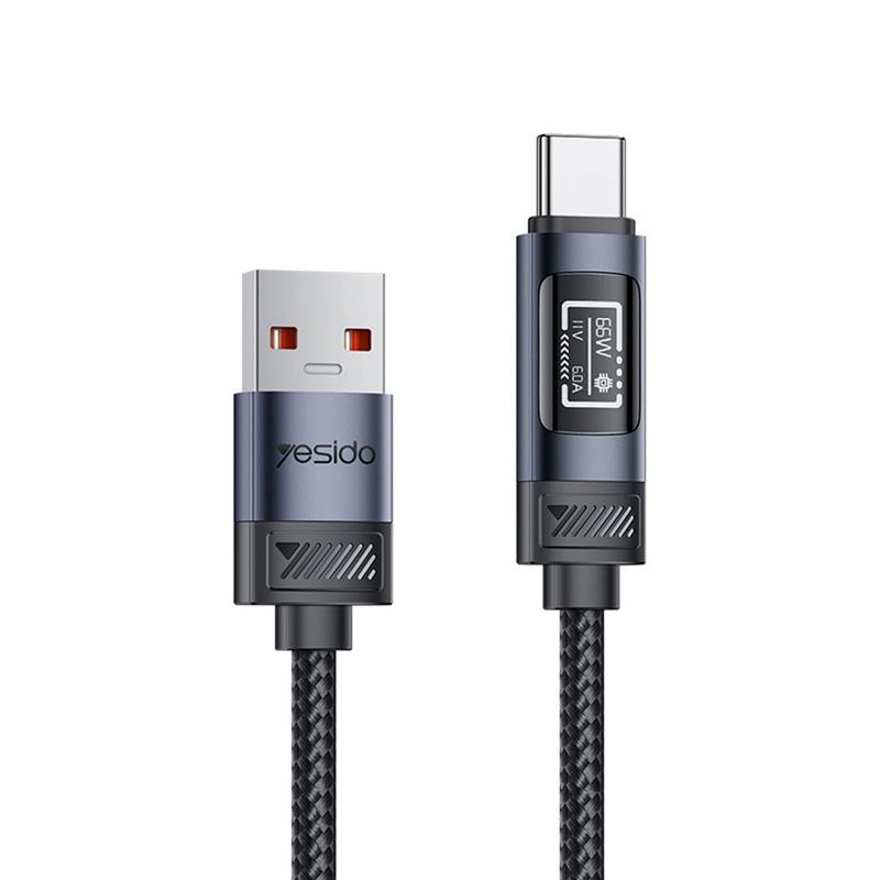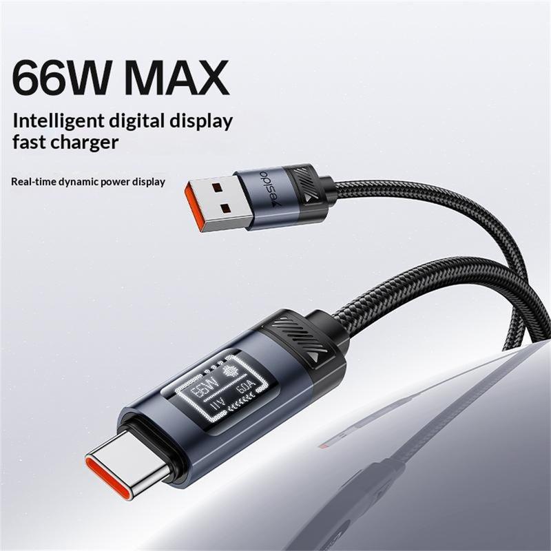 Yesido CA138C 66W:n pikalatauskaapeli - USB-A-USB-C-liitännöillä varustettu, nylonpunottu datakaapeli OLED-näytöllä - 1.2m
