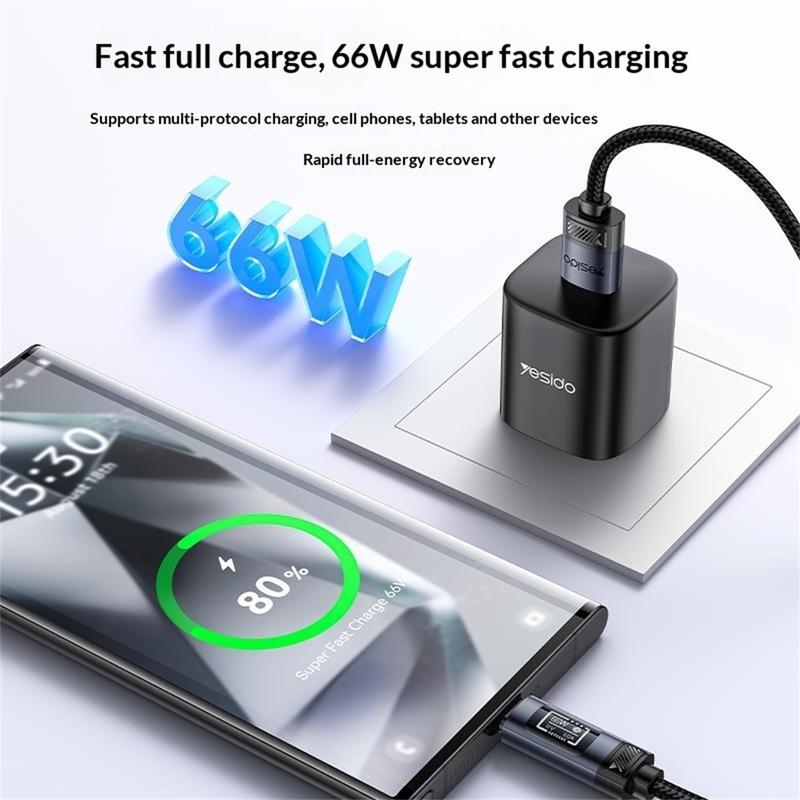YESIDO CA138C erottuu edukseen integroidun OLED-näytön ansiosta, joka näyttää lataustiedot reaaliajassa. Yhdistettynä vahvaan pikalatauskykyyn, kestävään punottuun rakenteeseen ja laajaan laiteyhteensopivuuteen se tarjoaa sekä suorituskykyä että luotettavuutta päivittäisiin lataustarpeisiin.